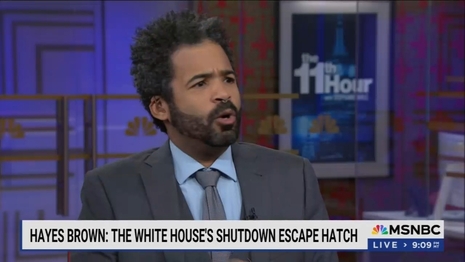 On Friday night’s 11th Hour, MSNBC columnist Hayes Brown argued that the government finding and reallocating money to fund certain personnel to be illegal, but failed to provide concrete evidence or reasoning. The segment was based on Brown’s equally weak opinion piece published earlier that day.